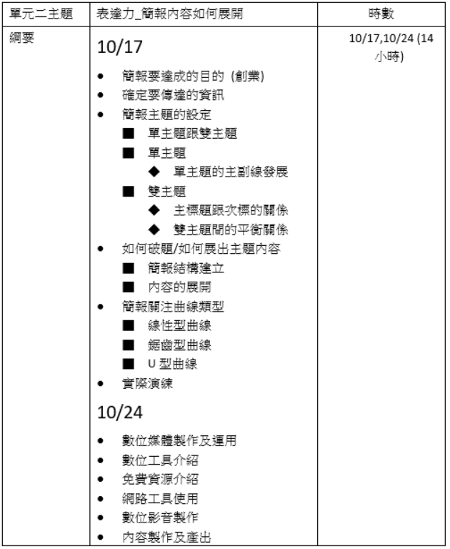 【單元二】表達力-簡報內容如何展開(10/17及10/24)