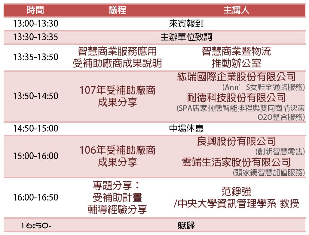 為傳遞「亞洲・矽谷智慧商業服務應用推動計畫」政策及產業應用成功模式,促進企業與民眾對智慧商業服務應用之瞭解與投入,加速補助成果與效益之擴散,會中特邀請成功受補助廠商分享經驗,並說明補助的成效。。。
