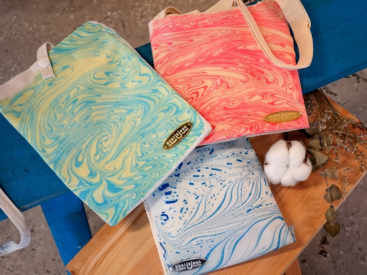 透過2小時的《Suminagashi墨流浮水染》體驗,您將會運用多種特殊的工具創作出與衆不同的墨流痕跡,工房同時為你準備了一系列布品素材,讓傳統染色更添趣味。