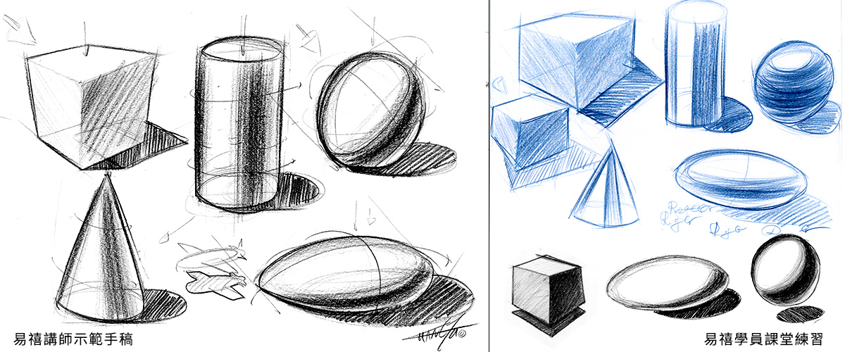 光影原理原則、色彩基礎原理 (本堂課用具:A4 紙直尺鉛筆原字筆)