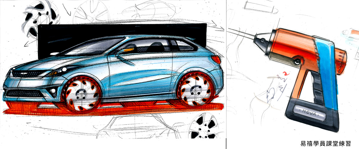 手繪技法營的學習目標在於培養與啟發學員對於動手畫圖的興趣,並透過系統化教學掌握基本手繪的理論及能力,再利用不同媒材引導繪圖教學,加強學員綜和繪圖能力,使學員可以快速表達紀錄及溝通,為日後設計之路開啟思考與技能同步的表現。 1. 激發學生可以以不同的技法畫出sketch 2. 圖面Present技法