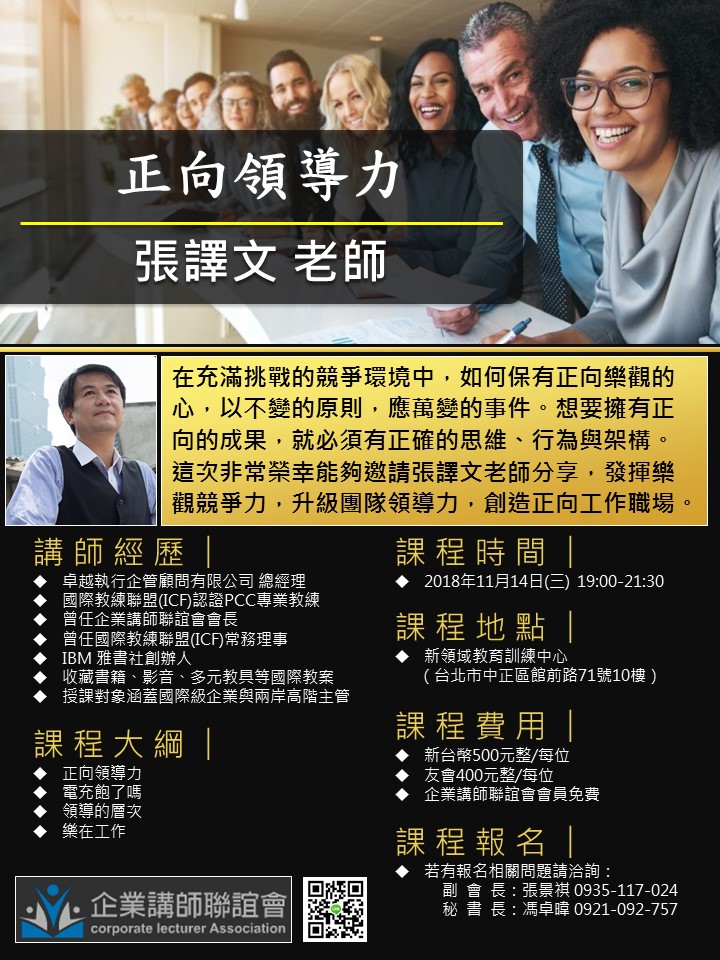 為我們分享【正向領導力】課程