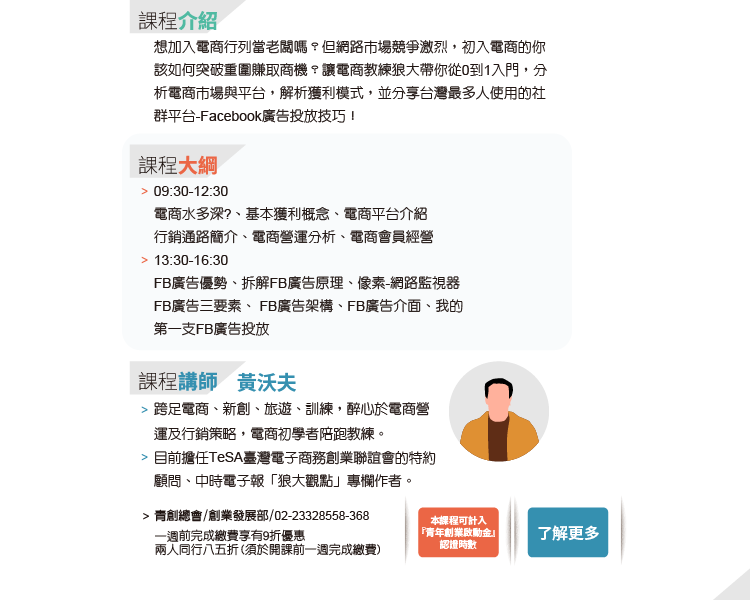 ☑ 單一課程超過1,000元以上,即贈送100元課程折價卷,可折抵下次青創學院課程費用