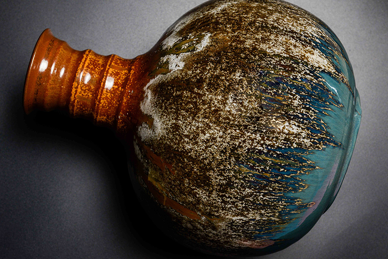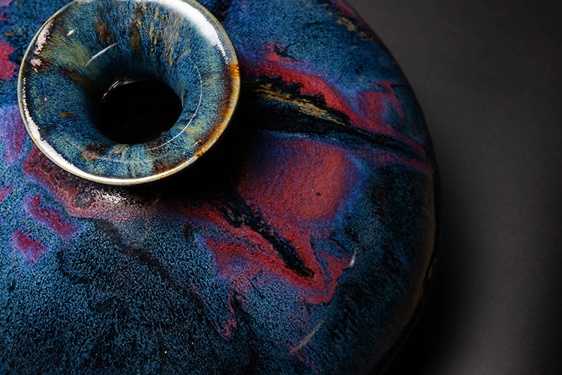 朱博士秉持著30幾年對陶瓷釉藥的專業研究經驗,及對宋代官窯傳統釉式的掌控得宜,研制出深具經典氛圍的新式釉色,並著墨於作系統化整合燒製而成果層出不窮,例如:青瓷、鈞釉、銅紅釉、鐵紅、青花釉、釉裡紅、黑天目釉、及各類鐵釉,甚至於木灰釉等燒製也獲得豐碩的成果。一般看釉,單分兩大系列:亮光釉及乳濁釉。上述所列宋瓷釉式都屬於亮光釉(以1260℃高溫為基準),直視其煉煉色艷的釉式光譜中存在著土與火的生命。本次展覽特於11/4(日) 下午2:00~4:00 安排藝術家朱邦雄博士與賓客對話,將生命的創作能量化做語言,讓一般民眾也有機會進入品味陶瓷藝術的領域,帶領您我看懂陶瓷藝術的形與色,以及藝術家融合古今釉色、甚至自創釉式的創作歷程。