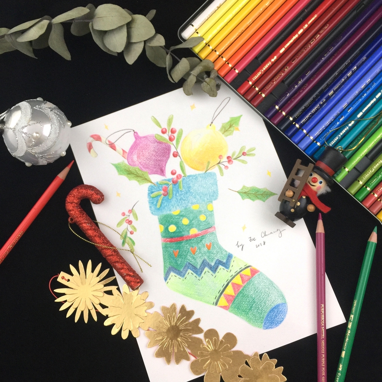柔伊插畫工作坊|聖誕襪色鉛筆課
