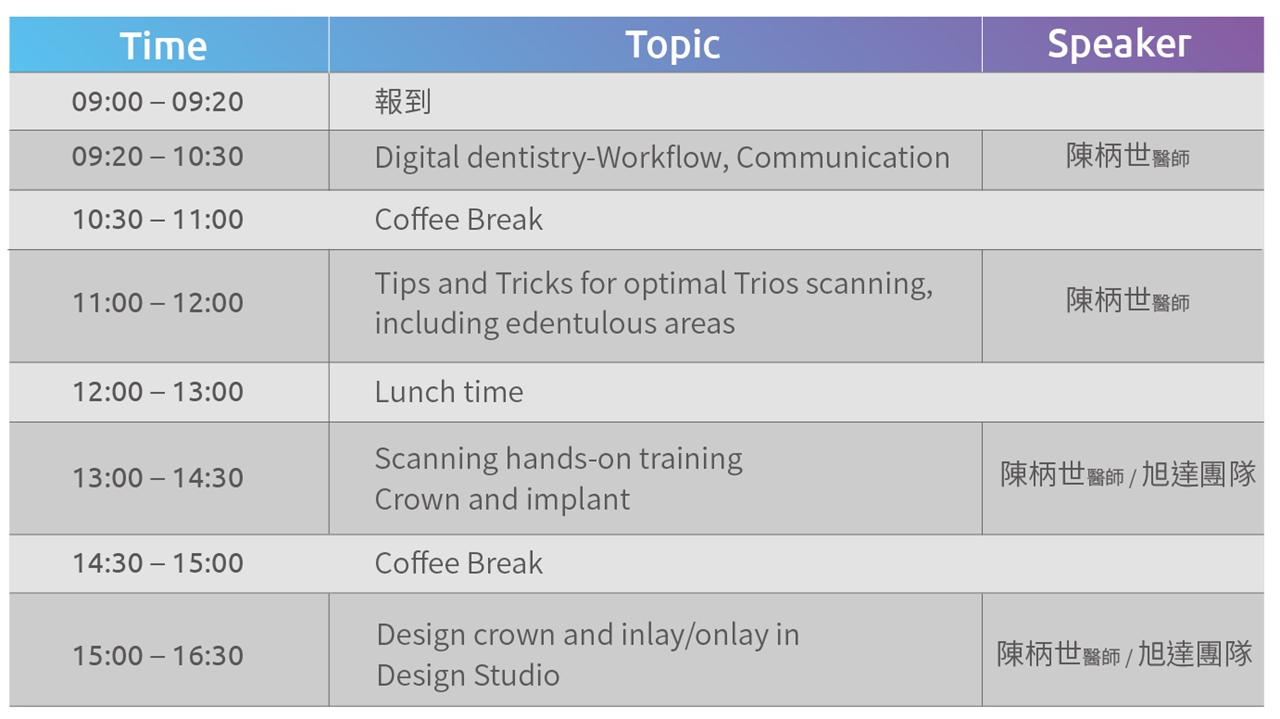 主辦單位:3Shape Academy Taiwan / 3D Magi 承辦單位:旭達生技 協辦單位:微笑聯盟教育學院