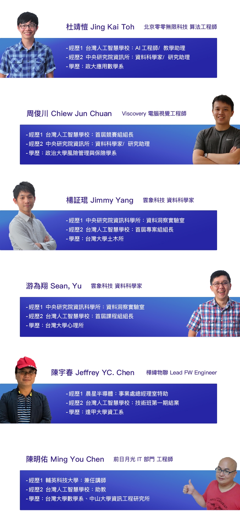 我們發現,在成為資料科學家前的學習階段,花了很多時間查閱各種的資料,從論文的坑到模型的坑,走了不少冤枉路,浪費了很多時間,如果當初在學習碰壁時有個學習社群能協助解惑或是指引方向,一定能更有效率 !