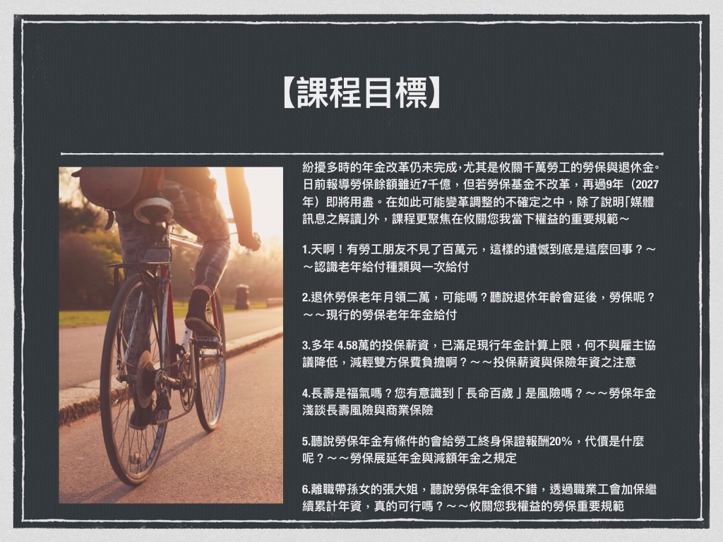 11月15日之前加購《壁咚您得權益~人人必懂的勞工退休金課程》,可享【優惠套票1+1】50%折扣,課程連結https://www.accupass.com/event/1810230315281360268...