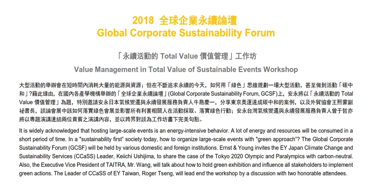 「永續活動的 Total Value 價值管理」工作坊 Value Management in Total Value of Sustainable Events
