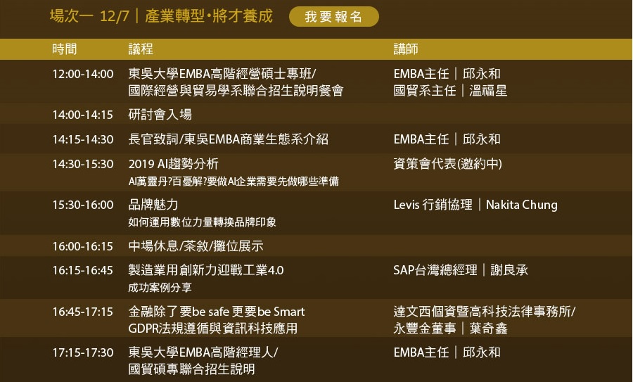 主辦單位保留參加者篩選、議程以及主講人之變更權利。