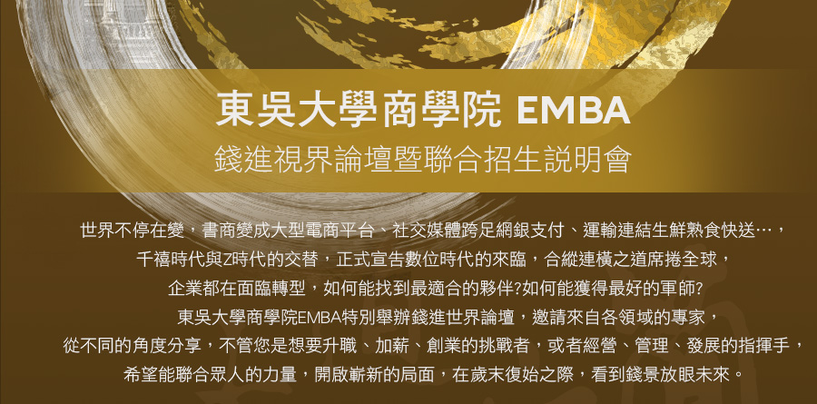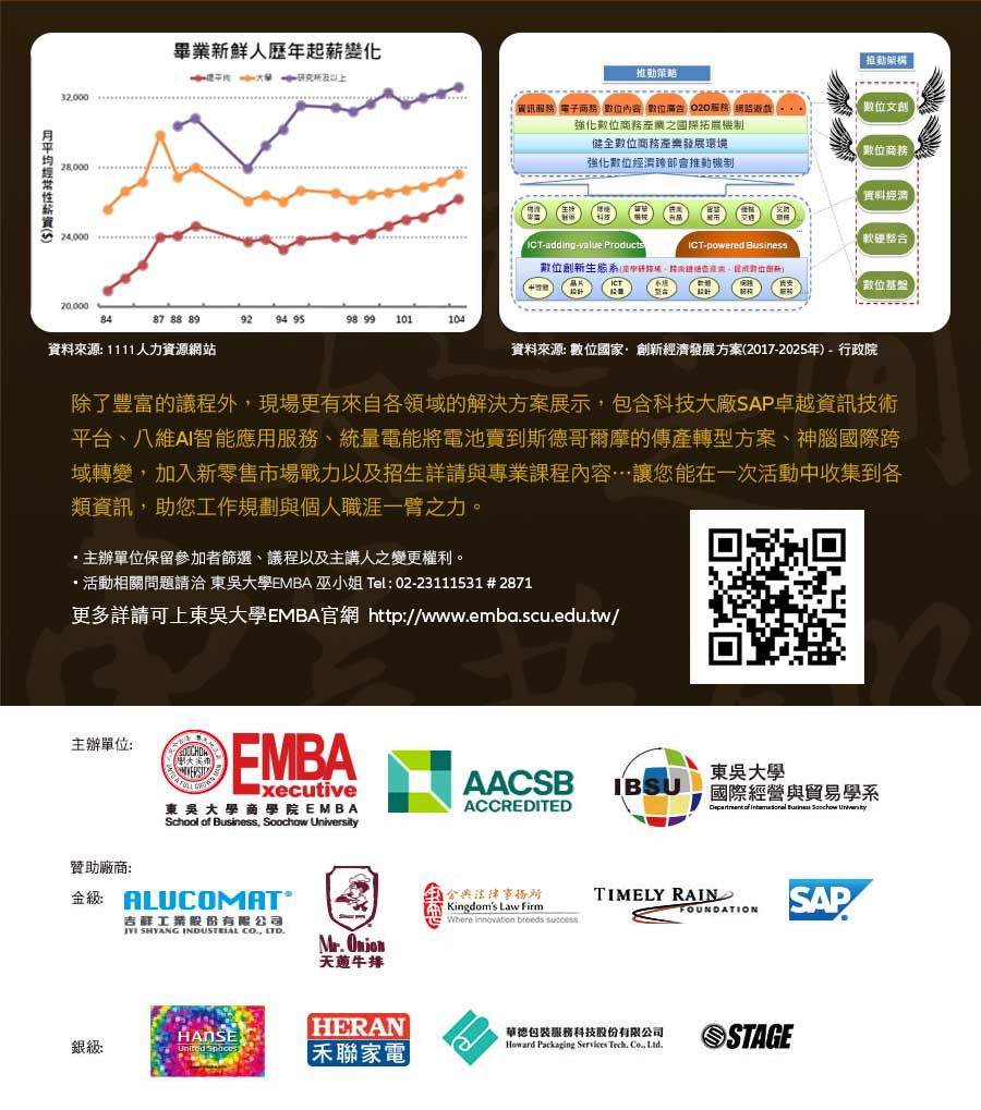 l 活動相關問題請洽 東吳大學EMBA 巫小姐 Tel : 02-23111531 # 2871