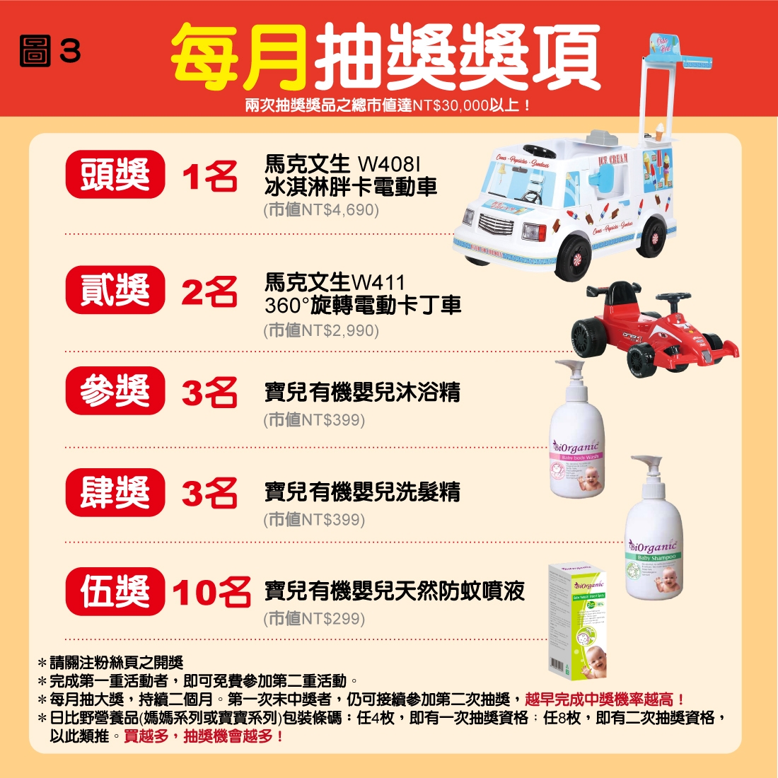 😍歡慶日比野週年慶!集活動期間內購買之日比野營養品 ( 媽媽系列或寶寶系列 ) 包裝條碼任4枚,即贈「寶寶樂-嬰幼兒專用奶瓶清潔液(補充包1000ml),1包」(限購買之原店家兌換),還有機會每月抽大獎,兩次抽獎獎品之總市值達NT$30,000以上!這麼好康,不要錯過!