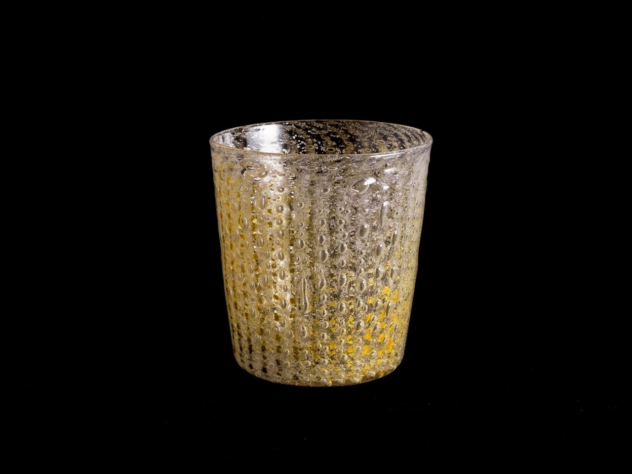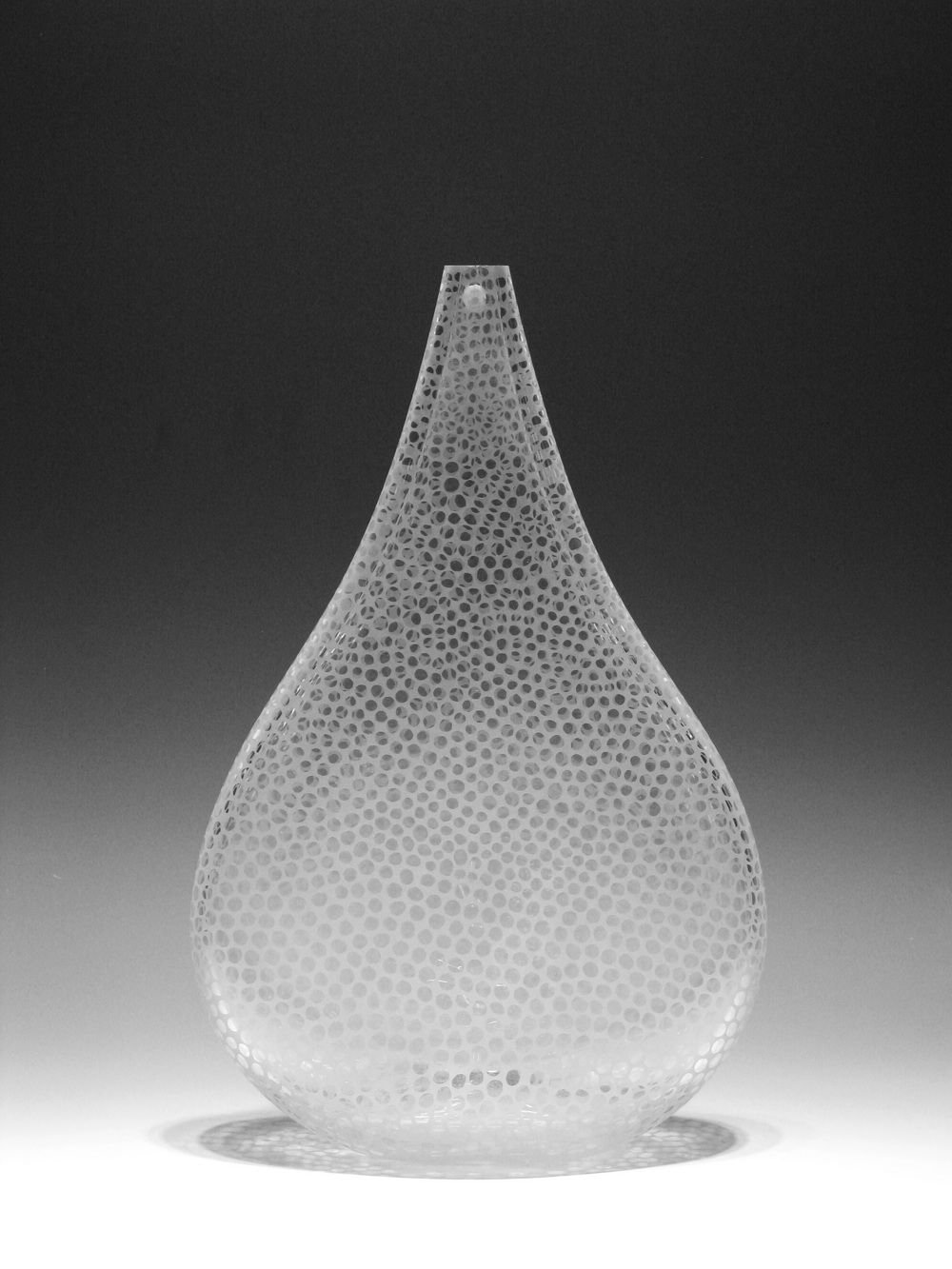 這次參與展出的作品裝飾技法多樣,其中「碎花氣泡清酒壺」是在透明容器夾帶氣泡,呈現玻璃膏在高溫之中,柔軟旋轉的螺旋紋樣,而這個紋樣也讓使用者可以對著宛如生命群體般的氣泡自由想像。
