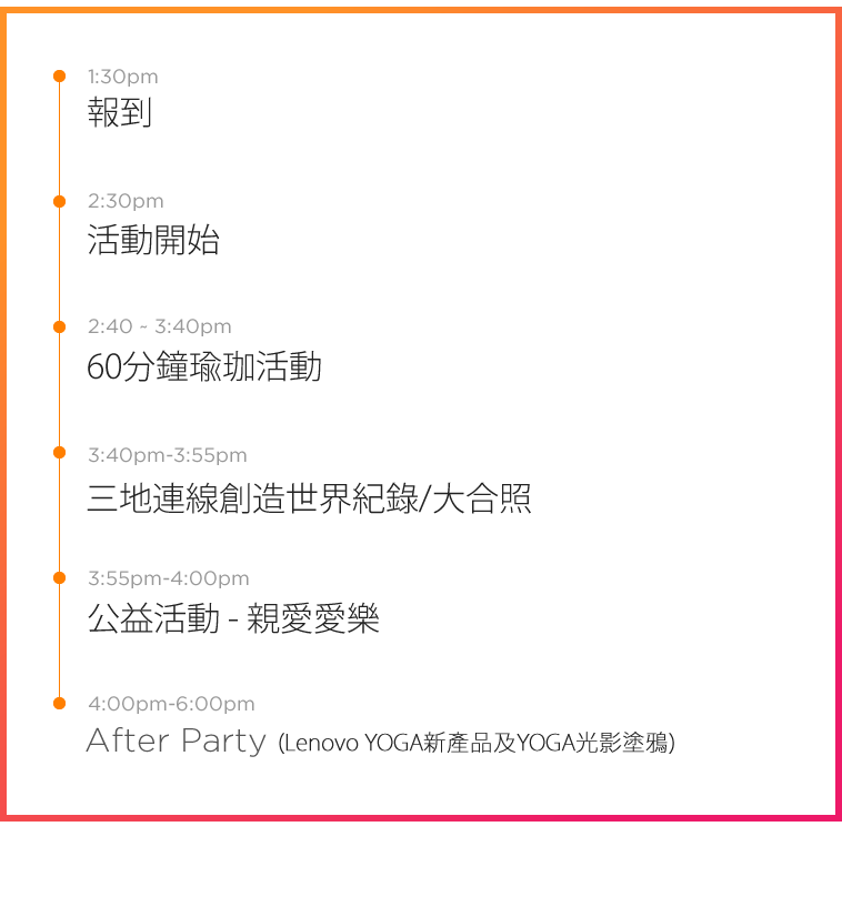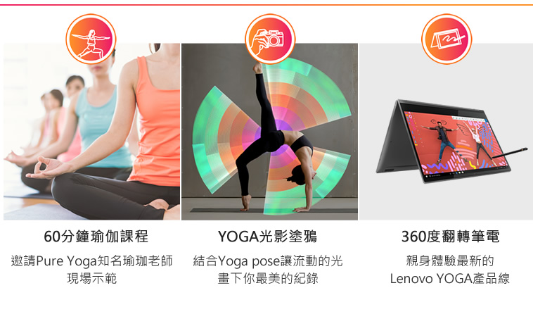 活動:60分鐘瑜珈課程、 Lenovo YOGA全新產品體驗區、YOGA光影塗鴉體驗區