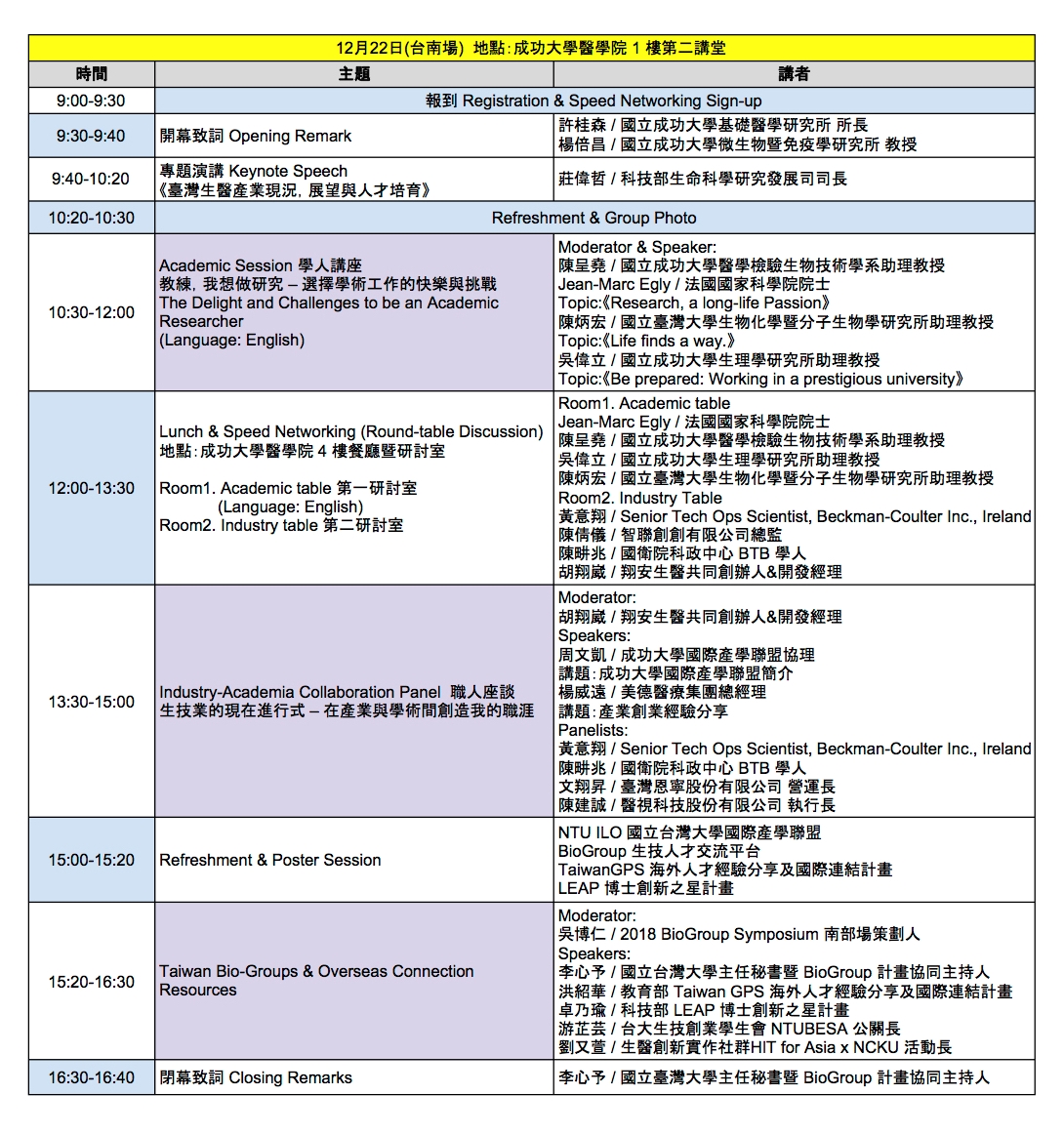 主辦單位|國立成功大學基礎醫學研究所、國立台灣大學生物技術研究中心、BioGroup 生物科技人才交流平台