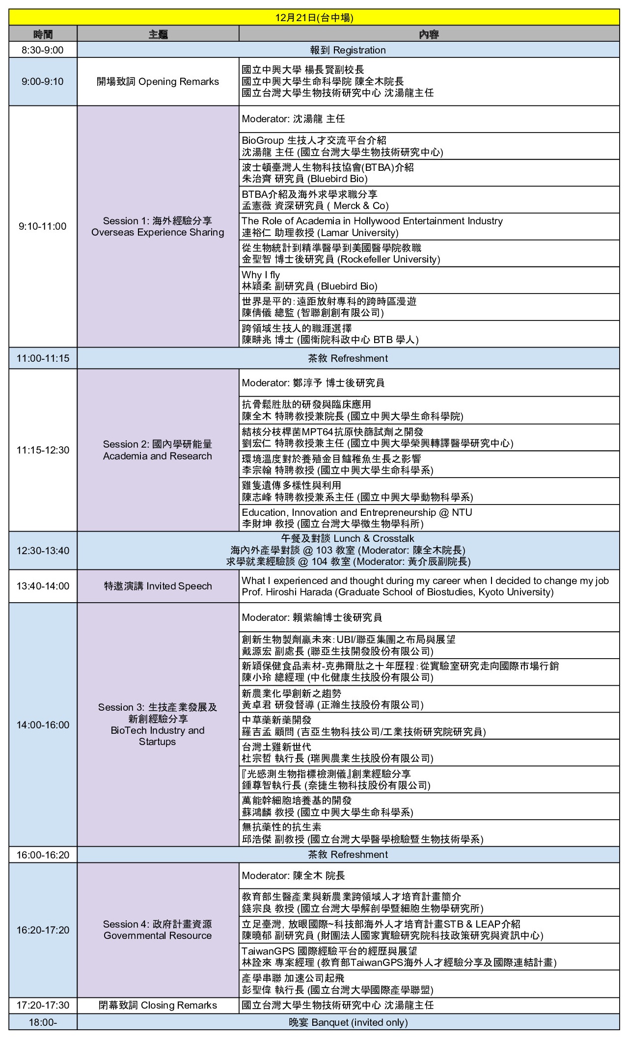 主辦單位|國立中興大學生命科學院、國立台灣大學生物技術研究中心、BioGroup 生物科技人才交流平台