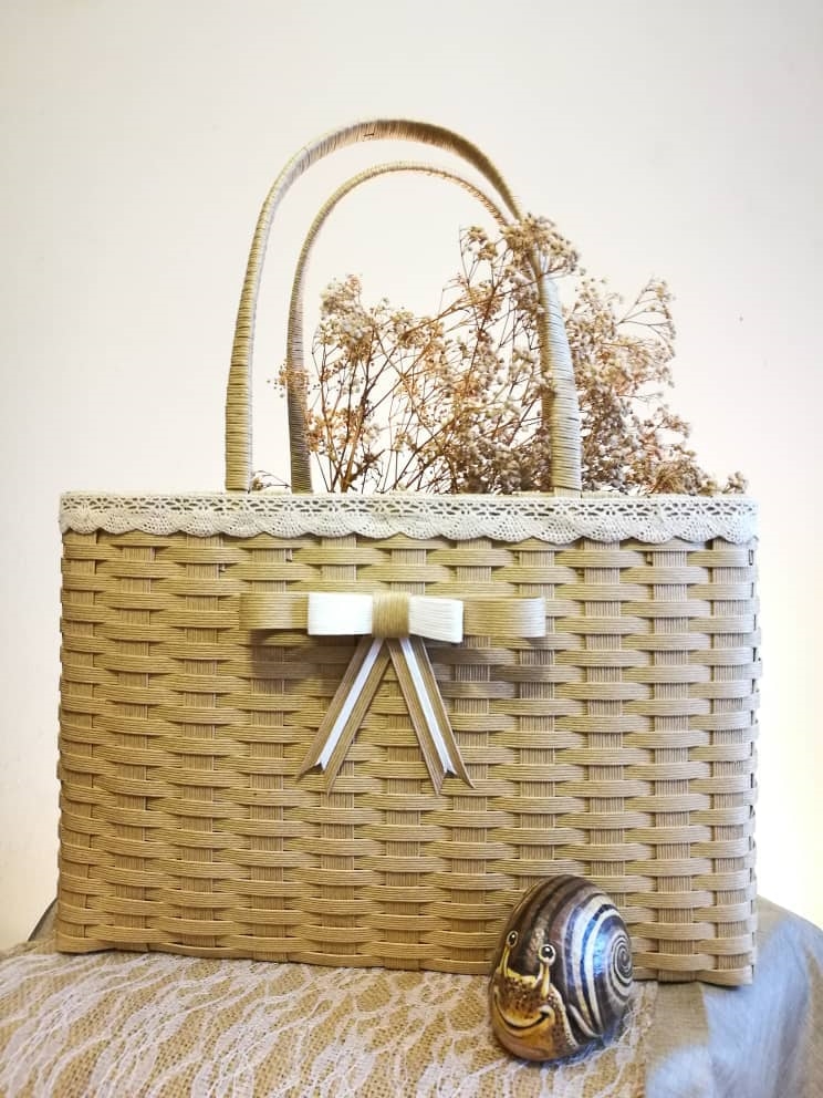🔺编织好的篮子防水还可提重物品。纸藤手感质朴,具备竹子和藤条的柔软度。