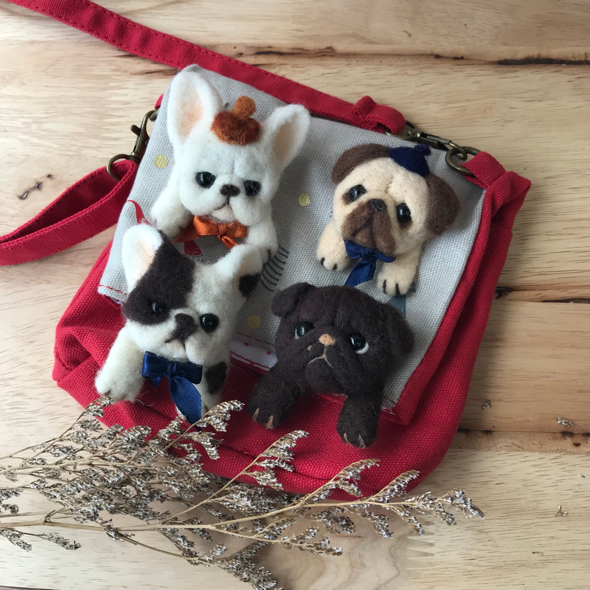 羊毛氈扁鼻狗狗胸針,一次學會巴哥、法鬥!