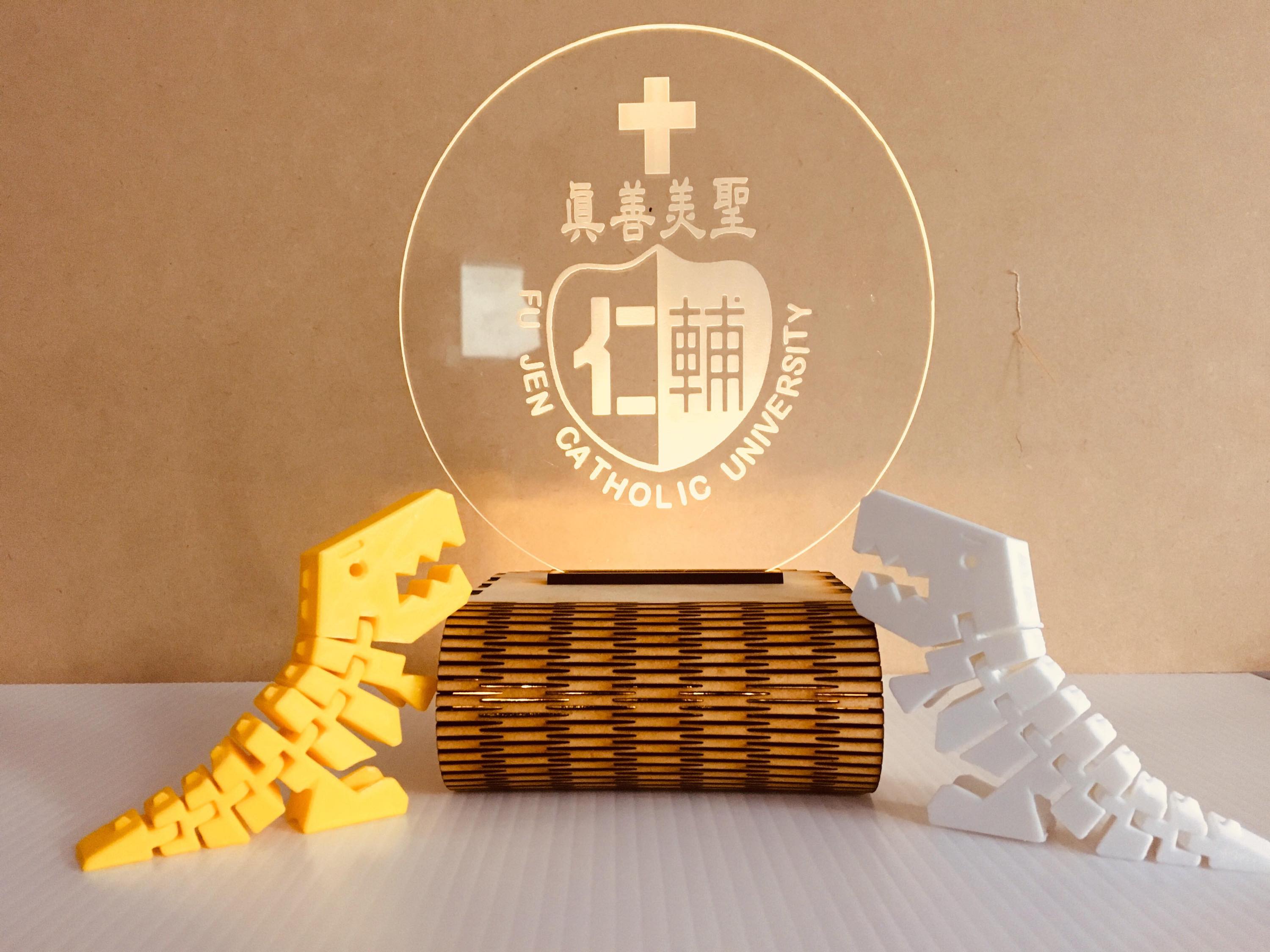 (圖說:本課程成品示意圖,雷雕燈板圖案可依個人喜好更換)