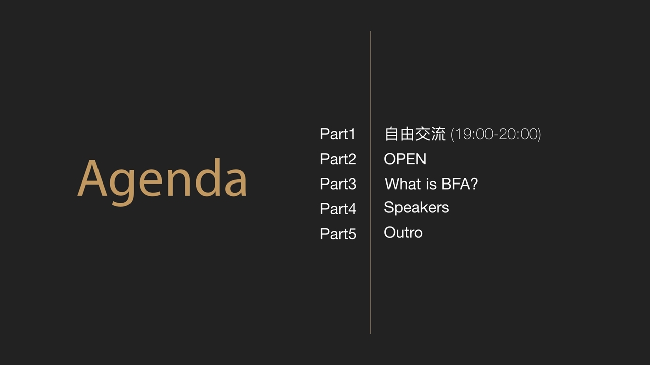 BFA 簡報小聚是一個以簡報溝通為主題的交流聚會,每次聚會由「主題分享」與「自由交