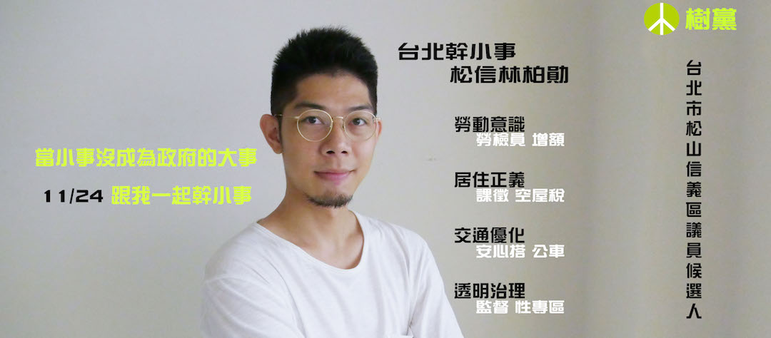 這是幹小事系列講座最終場 由林柏勛舉辦。 關心議題的林柏勛,長期耕耘電影評論,筆名素樸勛,同時也是2018亞洲電影觀察團團員。並以「台北幹小事」為主軸,參與這一次的選舉。性別議題、軍中人權議題,意外發現選舉期間很多候選人不敢觸碰,即便紀錄片本身的觀點既宏觀,又對稱。但林柏勛所關注的小事,是參選前就在做的事,選後也會持續。