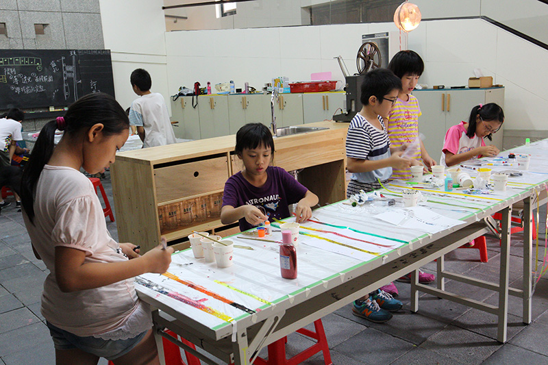 大人小朋友一起玩創作,集體發揮創意利用16mm膠卷和各種媒材(彩 色墨水、水彩顏料、紙膠…),共同玩出一件大作品並放映成果,課堂後再由老師將成果數位化保存。