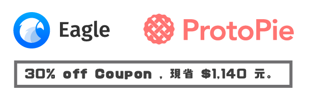 工作坊中將介紹到 UI 設計師必備的,知名設計師圖片管理工具 Eagle 與 國際得獎原型設計軟體 ProtoPie,提供給各位參加學員各 70% 優惠。