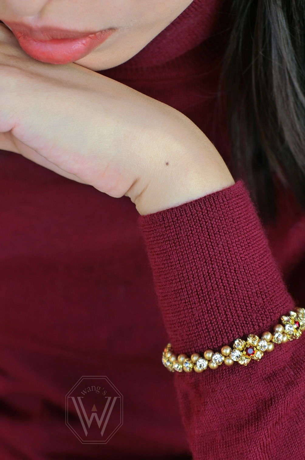 SWAROVSKI的水晶珍珠,搭配八心八箭切割的爪鑲水晶,閃亮亮的精緻手鍊來搭配秋冬服飾最好看~