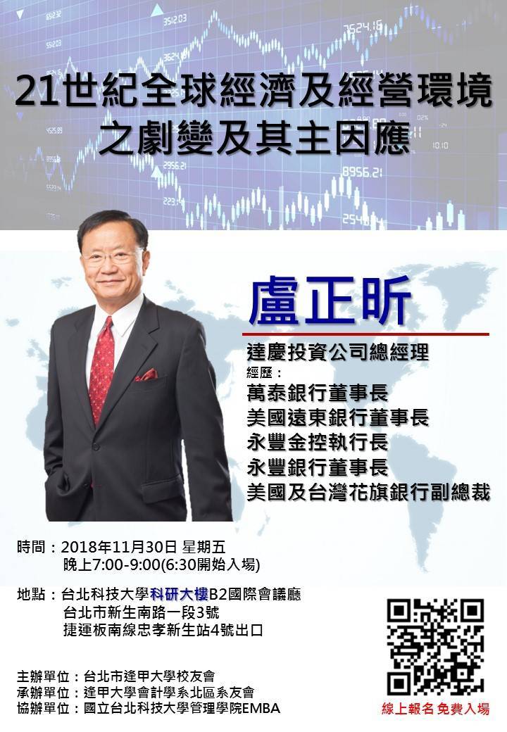 11/30台北市精彩講座-21世紀全球經濟及經營環境之劇變及其主因應