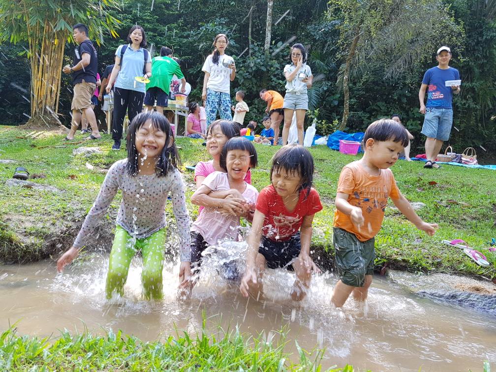 我們一起手牽手徒步涉水,一开始的前段经过茂密竹林,然后进入河水(最高水深2尺)路程需约45分鐘 (涉水活動可能不適合幼小的孩子需要自行斟酌)