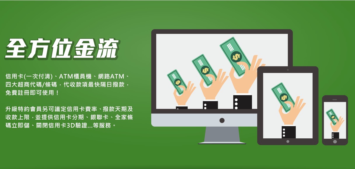 -綠界多元化金流服務: 超過20家銀行分期 / 大陸銀聯卡收款 / ATM虛擬代號等等