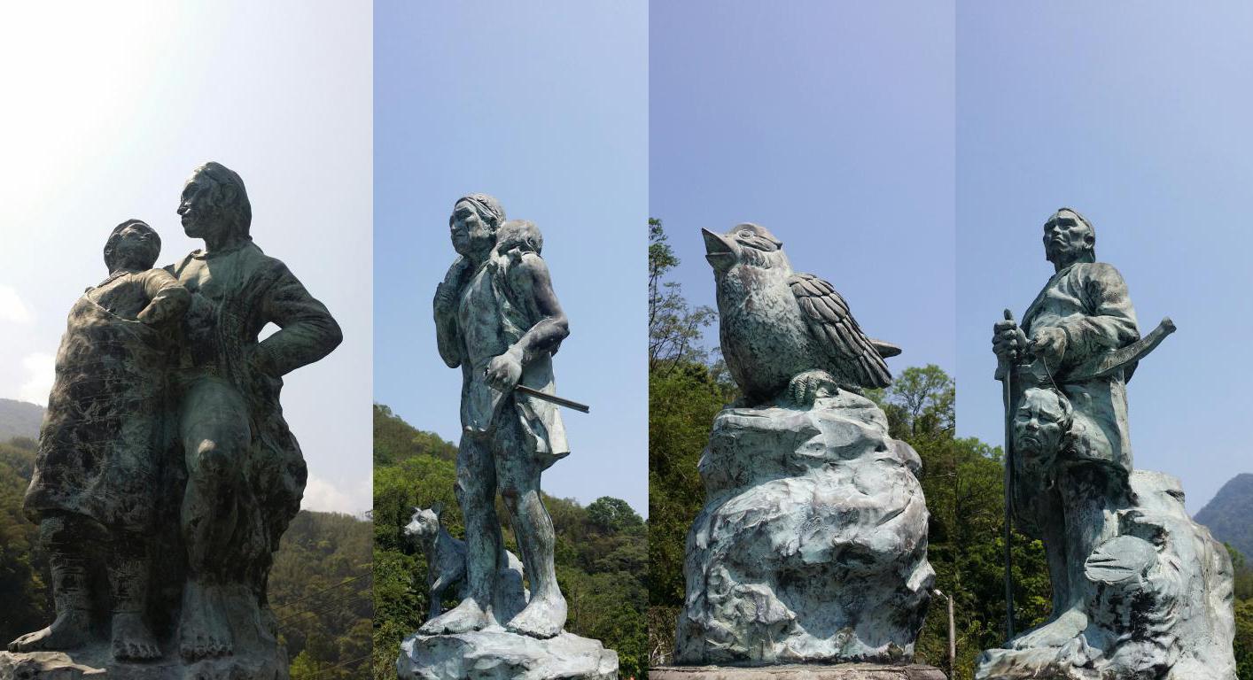 錦屏大橋,身裡外兩側泥塑著一幅幅關於泰雅族美麗的射日、靈鳥希利克、祭祀、耕稼等先民的生活與傳說故事,形象鮮活,矗立橋身上方,泰雅族出草、狩獵、天使、家族等雕像,讓我們宛如經過泰雅文化的洗禮。