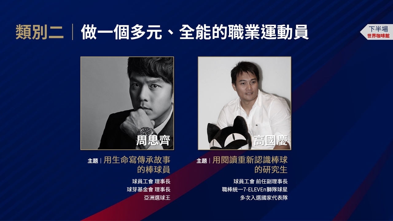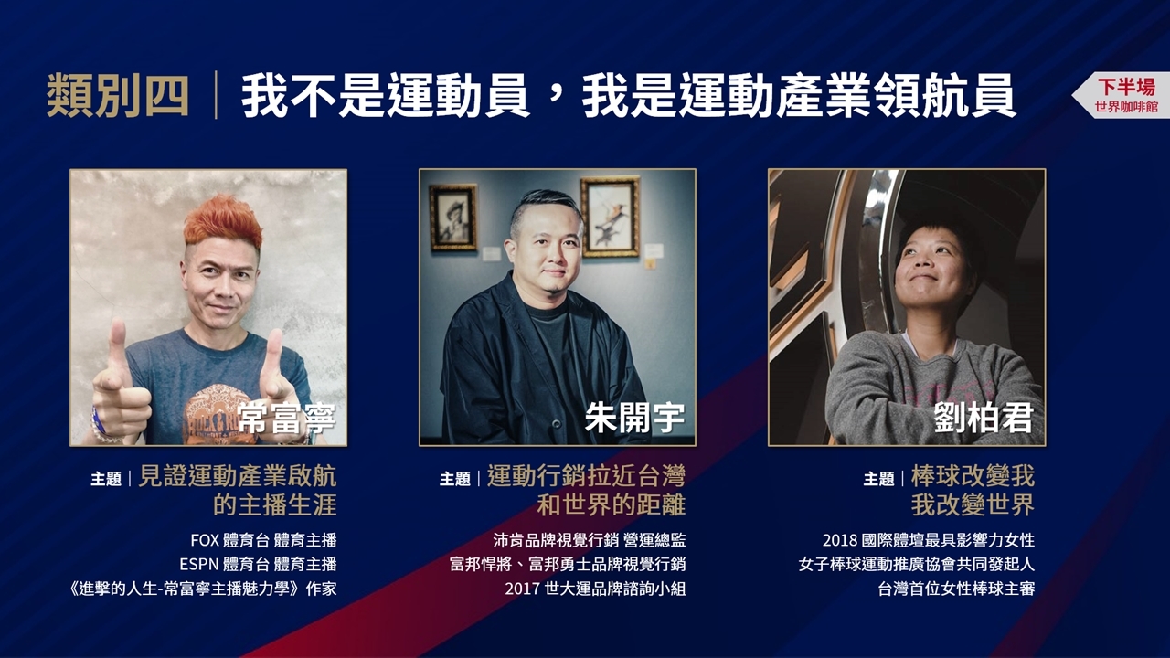 上半場第三、四階段,由兩位帶領台灣運動產業前進的專家,分享他們的所見與想法!