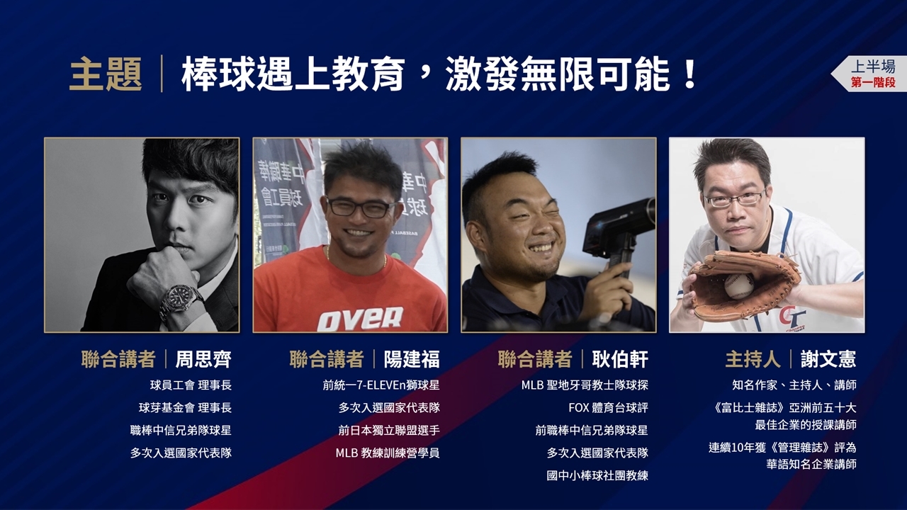 一階段由三位球星搭配主持人,討論「棒球遇上教育,激發無限可能! 」