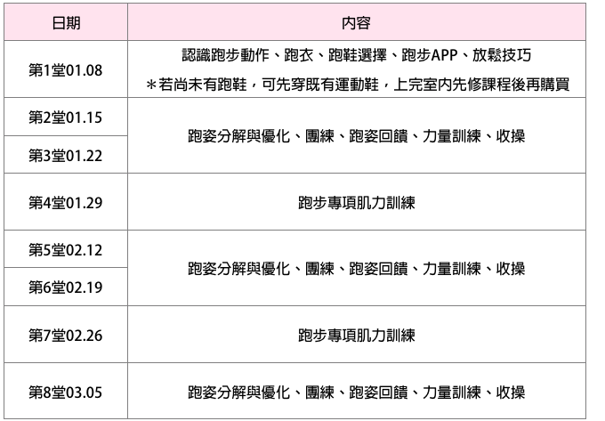 ・跑前跑後照顧,降低運動傷害:獨家跑班搭配專業運動傷害防護員,讓妳跑得健康安全。