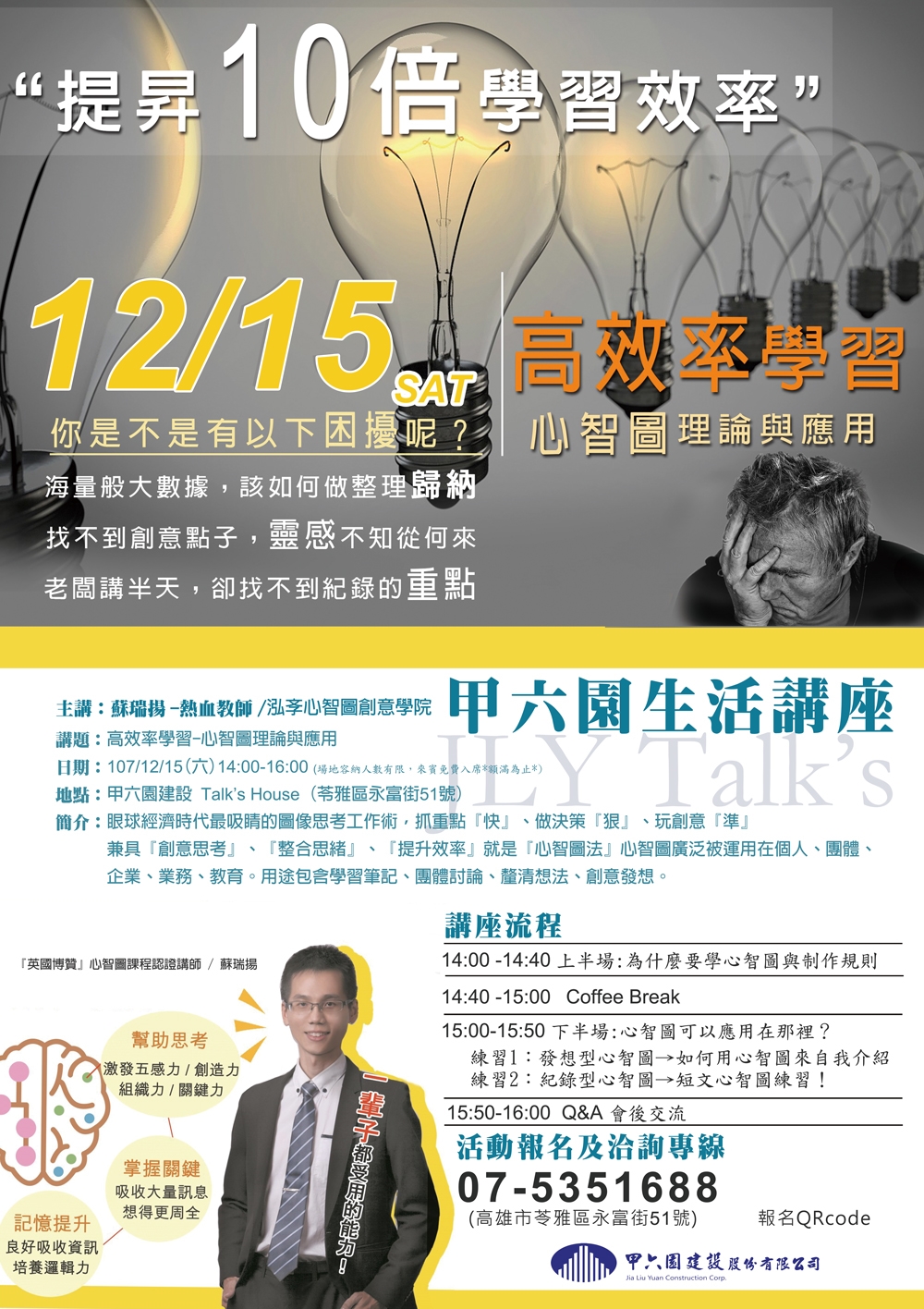 與甲六園輕鬆聊生活<高效率學習>心智圖理論與應用【免費講座】開放報名