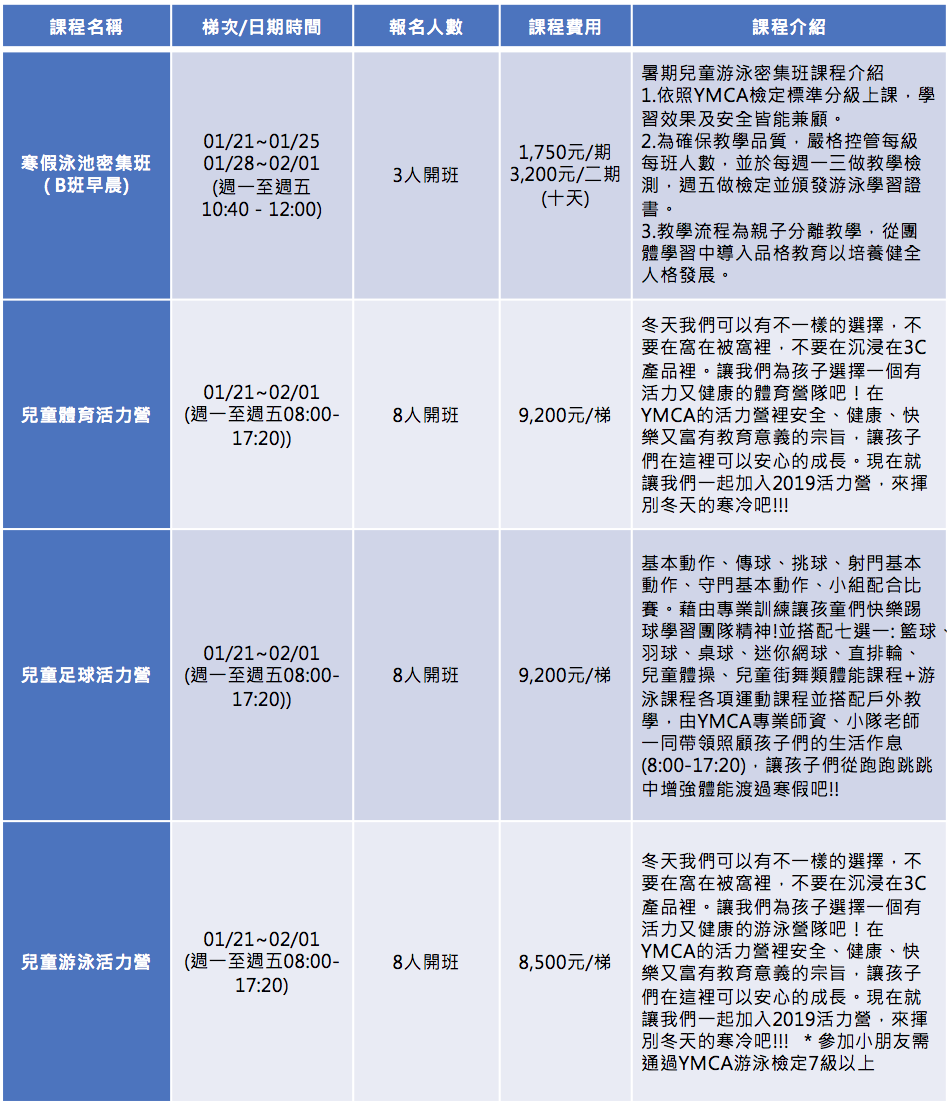 寒假泳池密集班(B班早晨)一次報名二週,費用為3,200元。