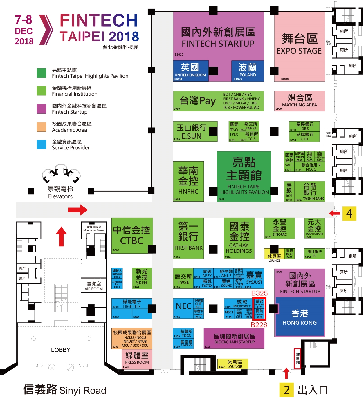 FINTECH TAIPEI 2018 台北金融科技展(B325、B226位置圖)