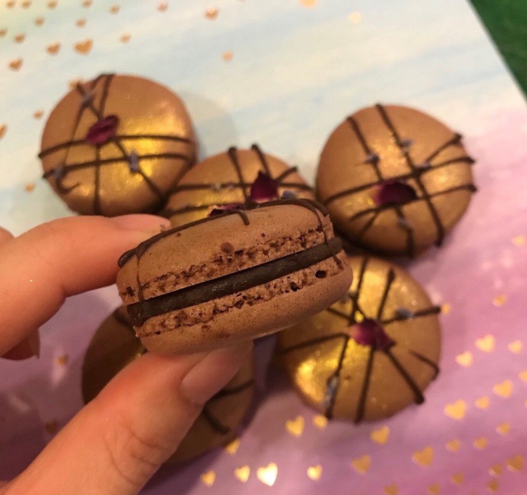 義式馬卡龍吃起來的口感很不一樣,作法也完全不同,但是我個人覺得成功率很高,而且配方調整過,減少甜膩感,內餡也是用超簡易方法完成,可以真正吃出巧克力的美味哦~