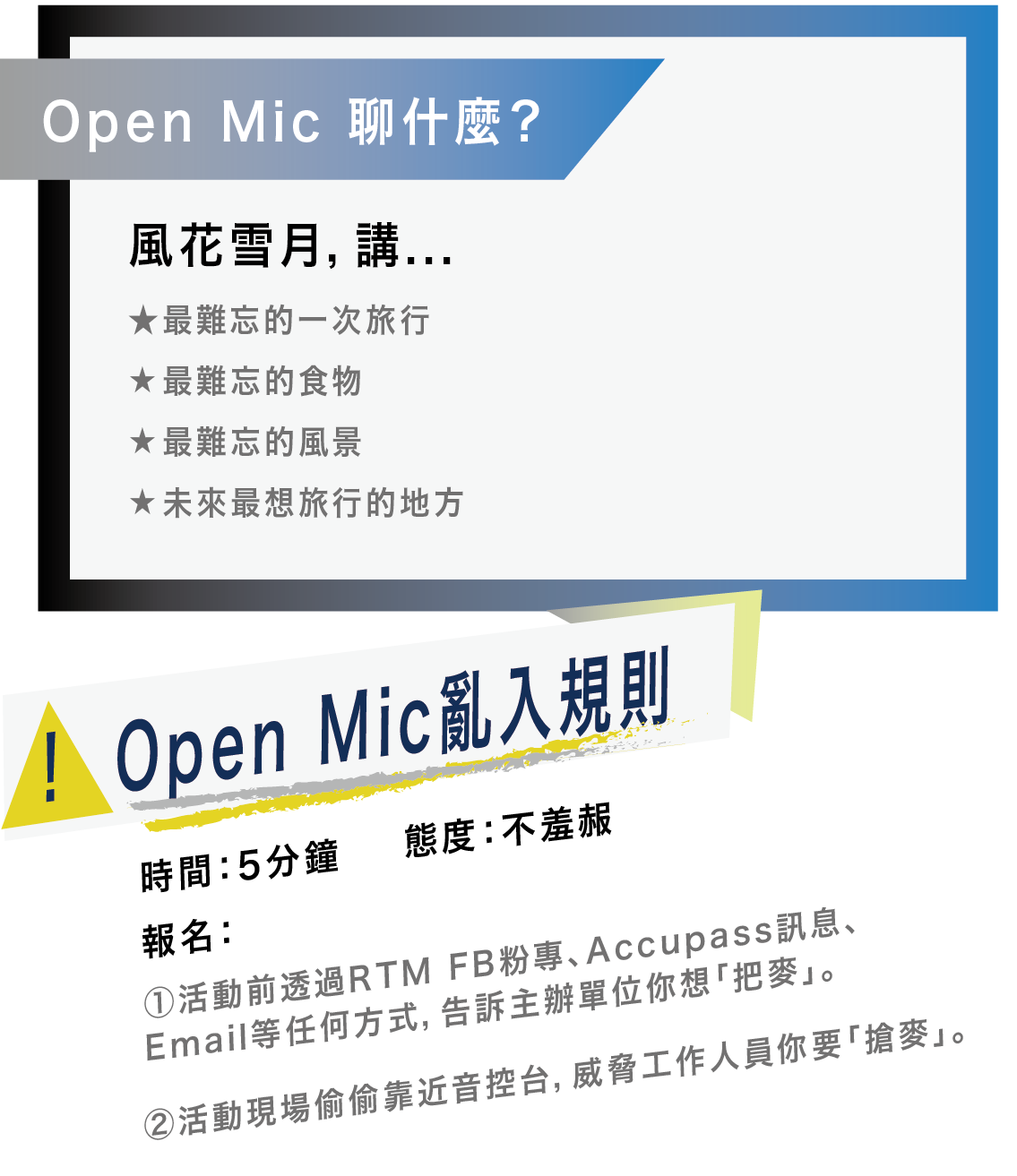 3. 本活動入場憑Accupass電子QRcode電子憑證。電子憑證為Accupass系統自動於您報名成功後,寄至您於報名時填寫的Email。活動當日進場,請務必以 紙本或手機出示您的QRcode。