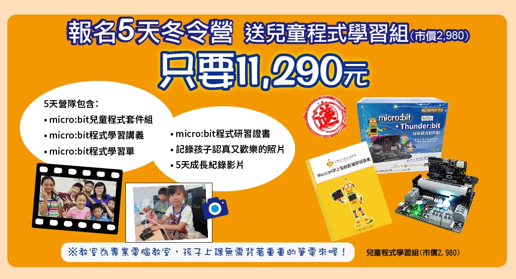 別再想囉!!!我們為您的孩子量身打造一系列,完整有系統的「mirco:bit寒假營隊課程」,讓孩子在玩樂中學習豐富又實用的課程,讓寒假生活充滿意義,留下美好記憶,趕快加入我們的行列吧!!!