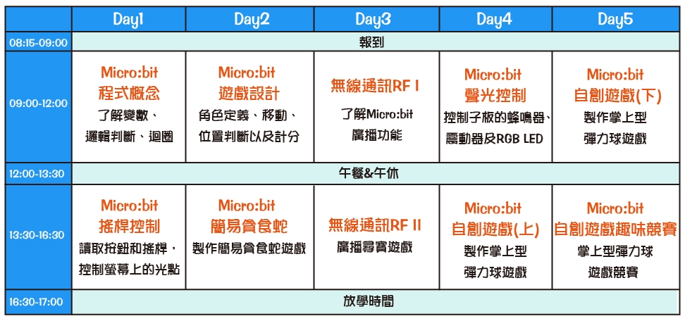 本營隊含micro:bit程式學習套件組、講義、營養午餐