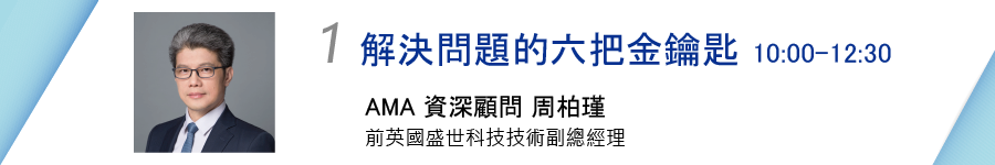10:10-12:30 >>> 解決問題的六把金鑰匙| AMA 資深顧問|周柏瑾 Benjamin Zhou