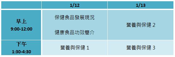 時間 : 1/12.13 9 :00- 4:30(兩天皆須參加)