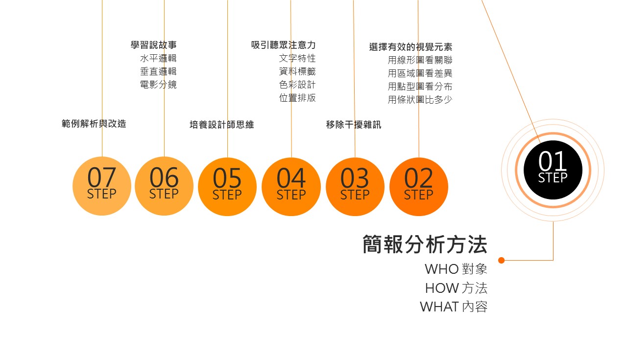 | 19:30~20:50 | 暢銷書籍《哈佛教你做出好圖表》、《Google必修的圖表簡報術》重點導讀 /Steve職場簡報提案實戰分享 |