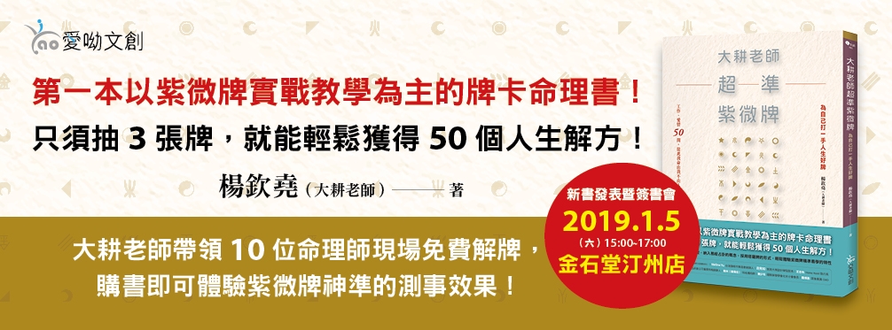 凡在2019/1/5前在「金石堂汀州店」購買本書的前 70 位讀者,結帳時可抽一張紫微牌。