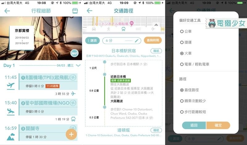 2. 航班、住宿、景點、體驗、美食都能連接部落客推薦,快速排入行程,系統也會自動計算「交通」,連複雜的「日本地鐵」,都能根據行經路線、精確計算出「地鐵周遊券」的最佳組合,大大節省交通費!