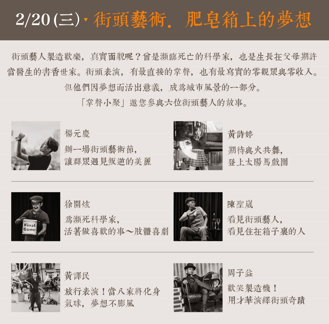 1.用掌聲小聚的明當天最感動您的一位夢想家,當天獲得最多貼紙的夢想家,我們將代替您提供實質鼓勵。