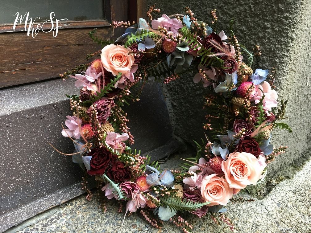 【 九月份花藝課程:靜謐粉紫花圈 】