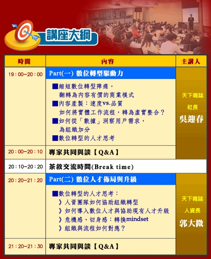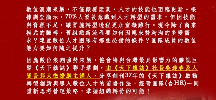2/21(四)19:00-21:30--天下雜誌【人資新價值—數位轉型與人才加值 】